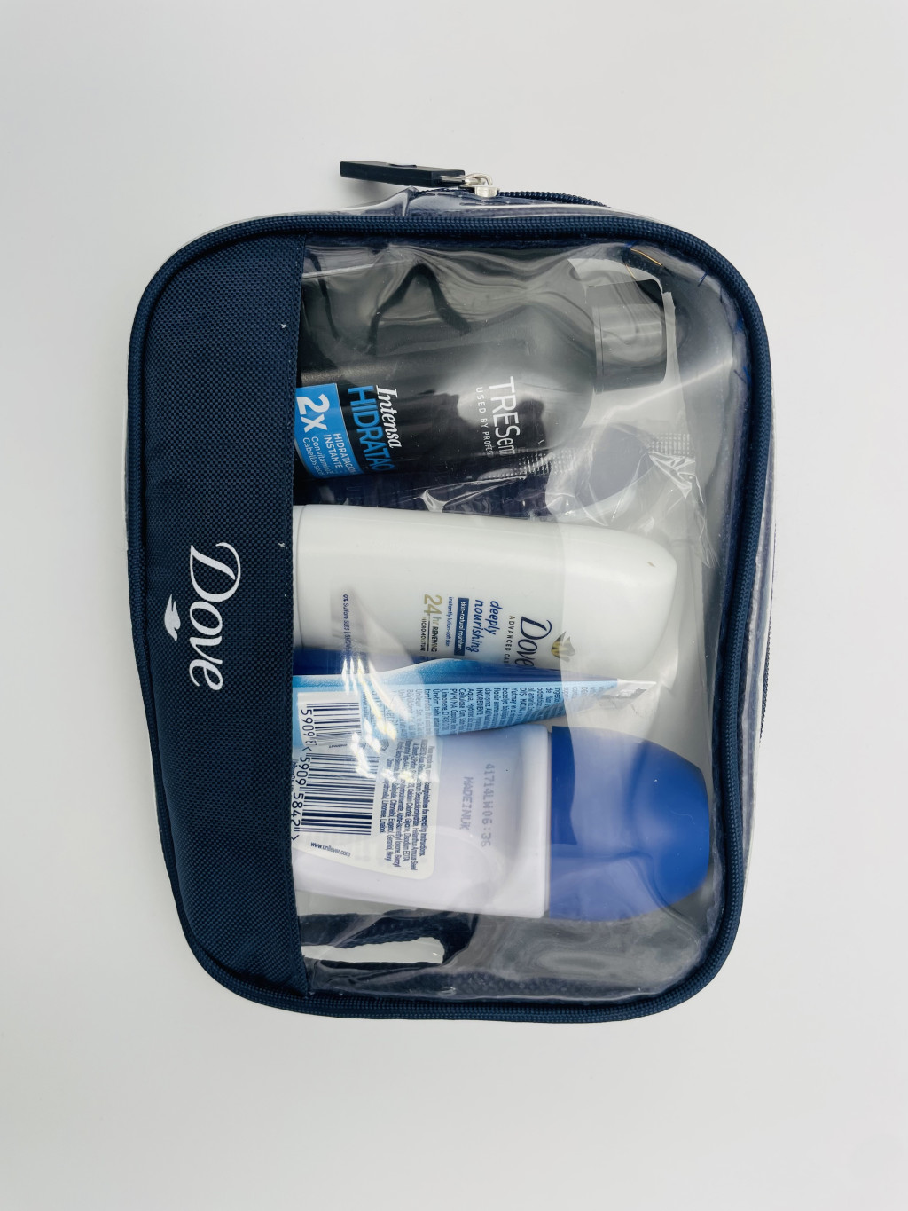 A Dove neszeszer Mini Tresemme sampon + tusfürdő + golyós dezodor + Signal fogkrém + fogkefe praktikus, jól átgondolt megoldás mindazoknak, akik szeretik, ha az alapvető tisztálkodási termékek mindig kéznél vannak, rendezett formában, könnyen szállítható kiszerelésben.