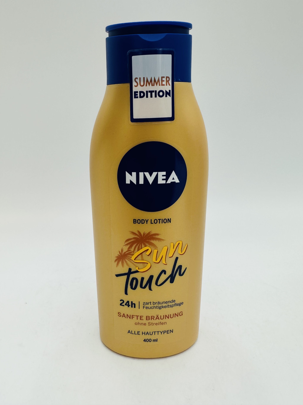 A Nivea Önbarnító testápoló Sun Touch 400 ml olyan testápoló tej, amely egyesíti a mindennapi hidratálást a fokozatos, természetes hatású barnító hatással. Úgy lett megalkotva, hogy a bőrt ápolja, miközben segít napcsókolta, aranyló árnyalatot kialakítani anélkül, hogy szoláriumba kellene járni vagy napozni.